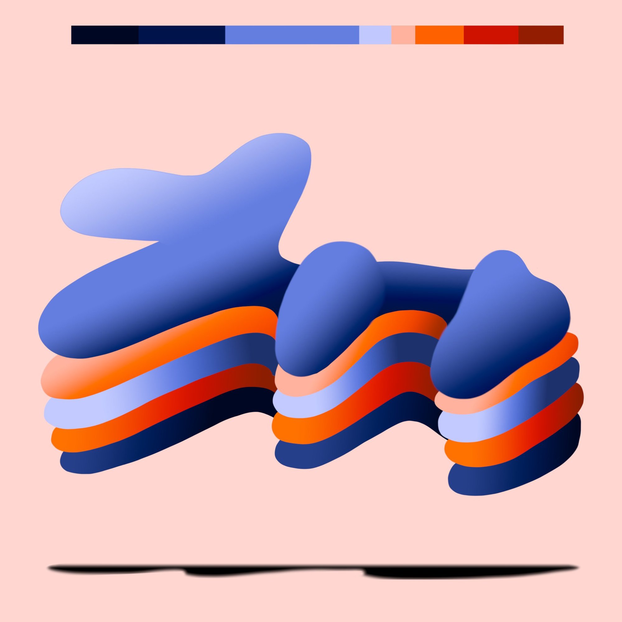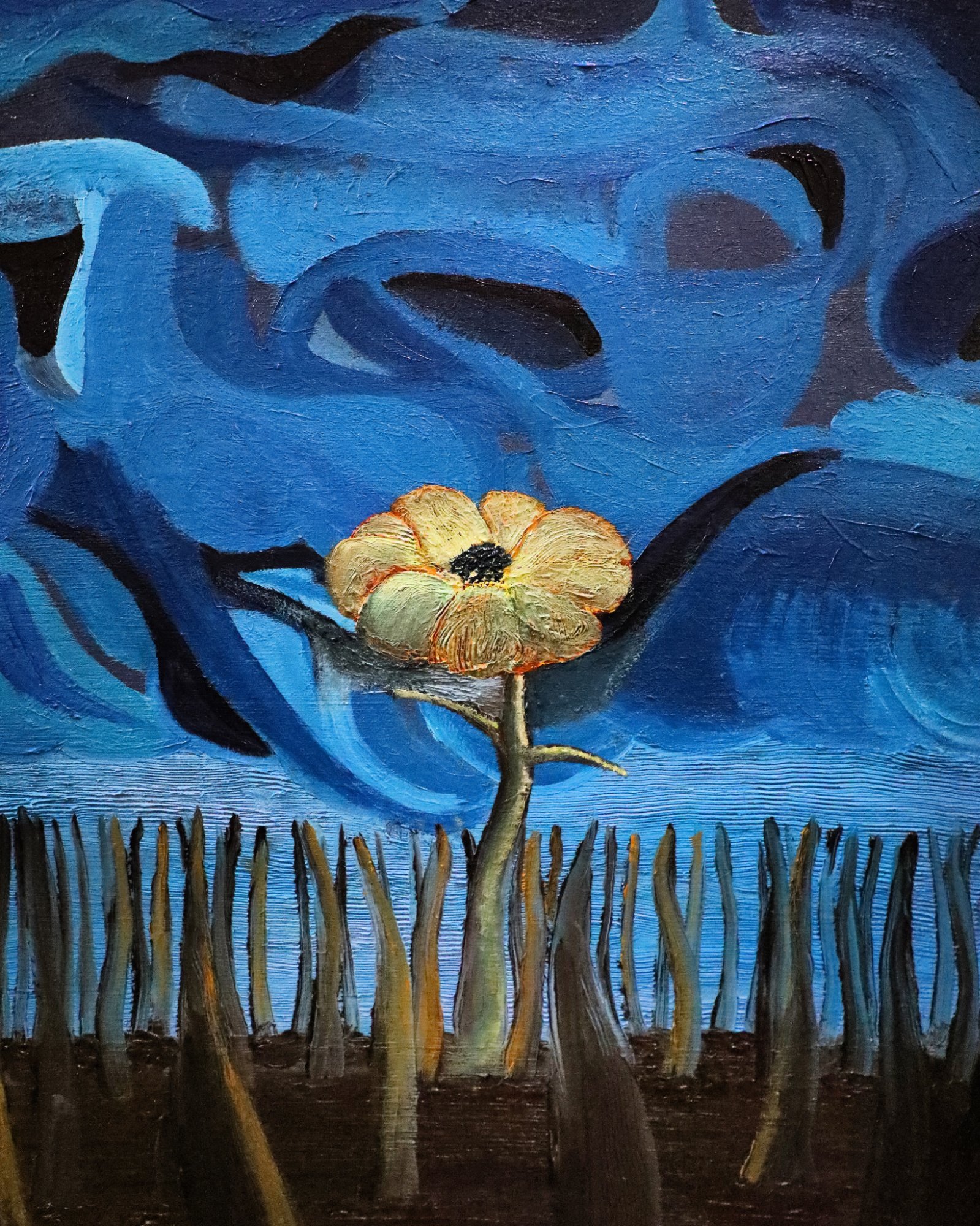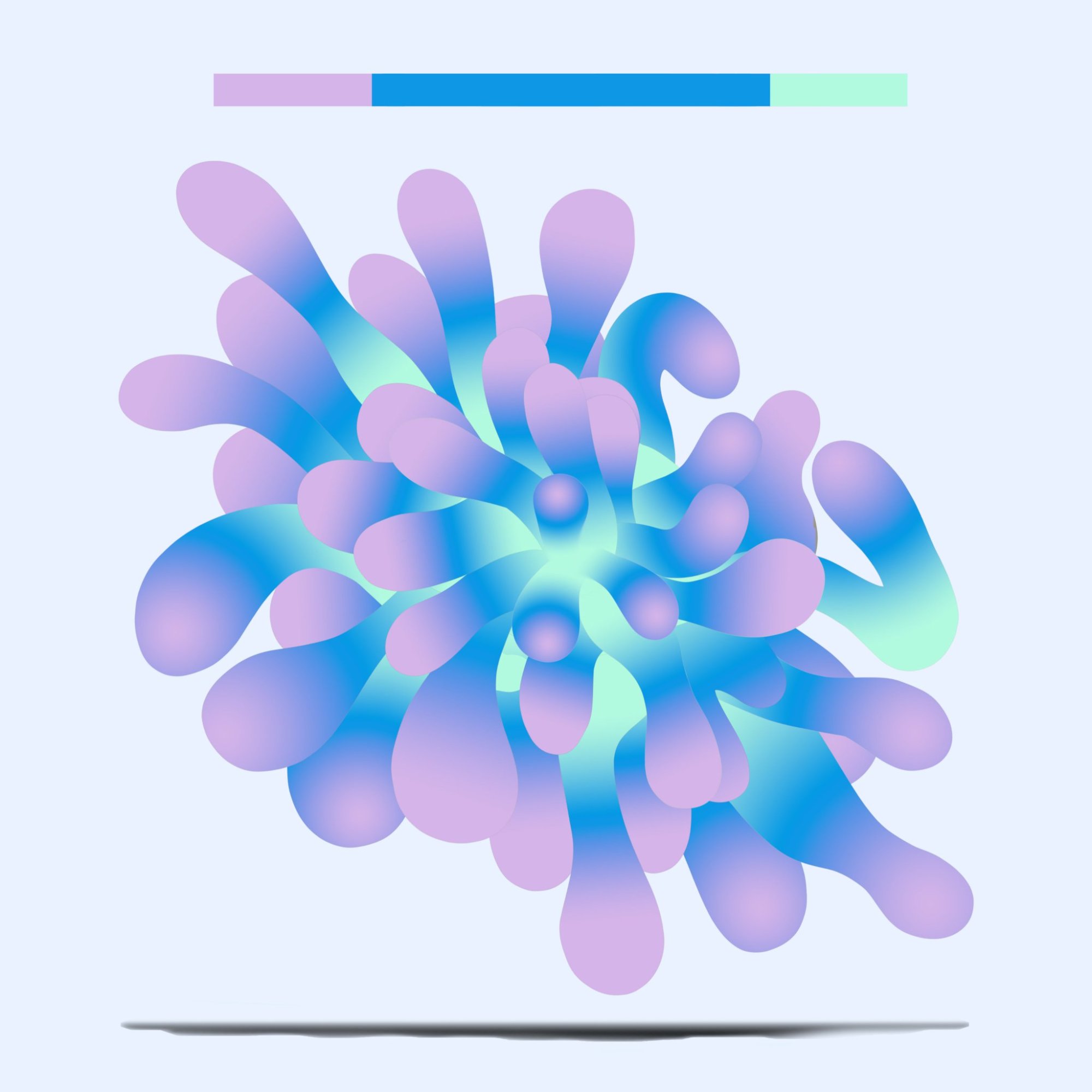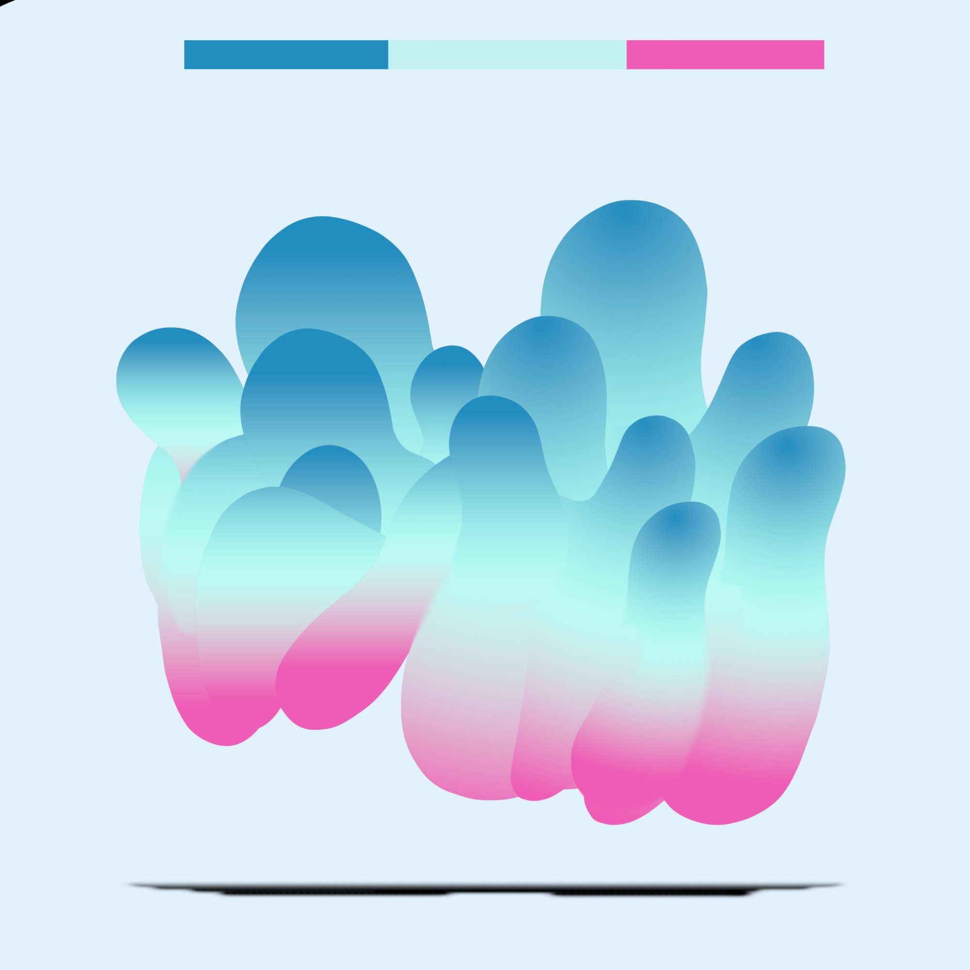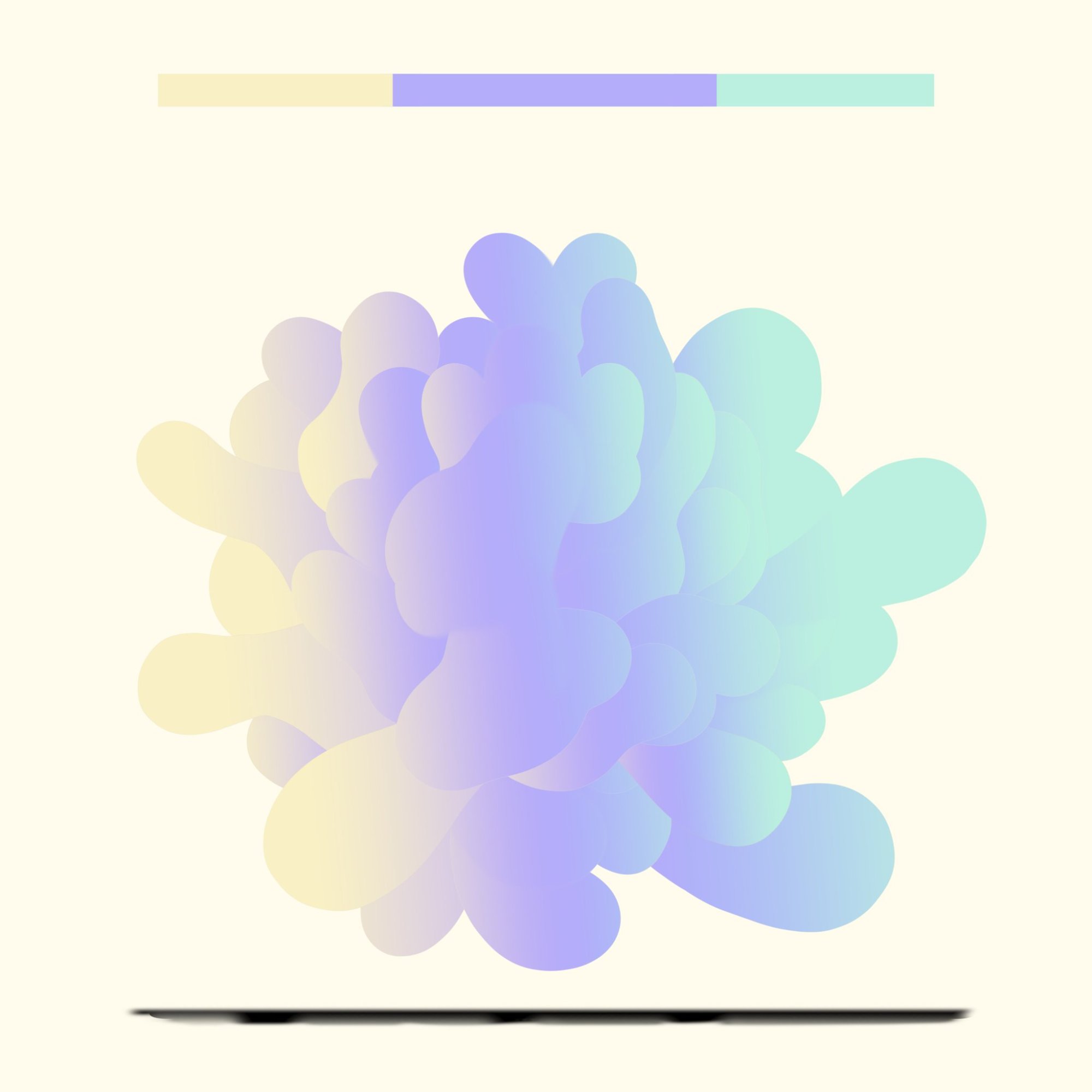 His paintings accumulate through gesture into dense layered fields of energy and form. His digital work explores the architecture of organic shape — structured, intricate, alive. Both practices share a commitment to process: the mark made, the iteration kept, the decision left visible on the surface.