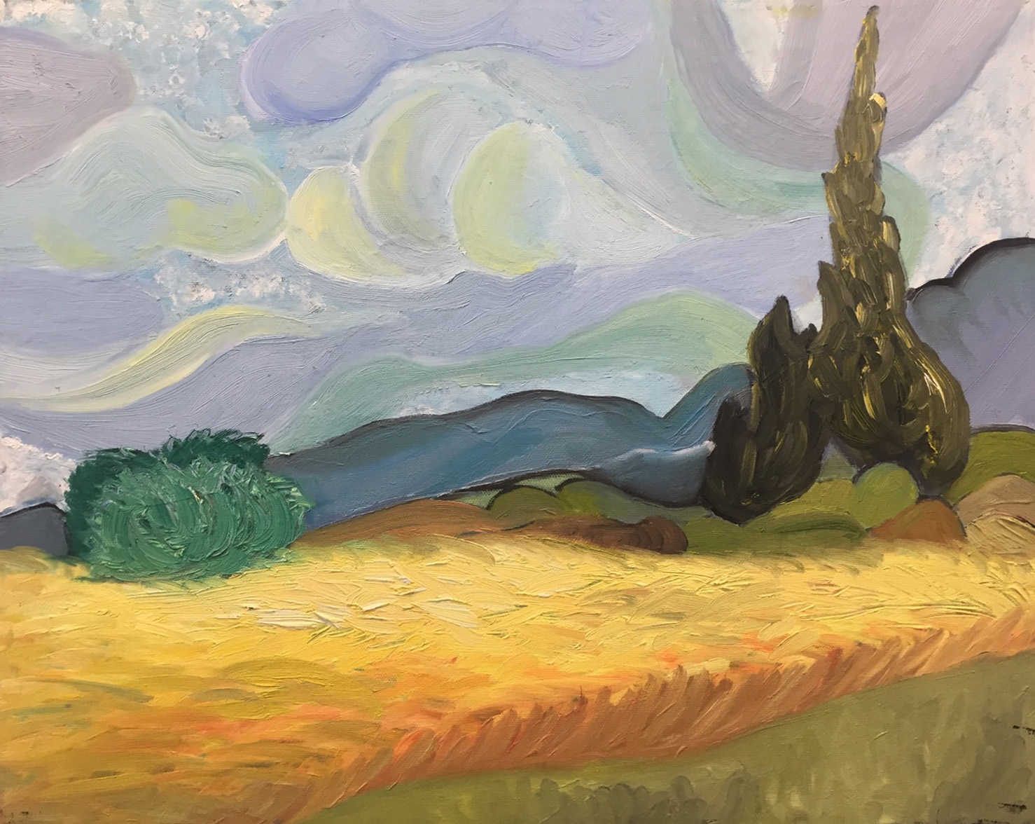 What's currently on the easel — works in progress, active commissions, and pieces taking shape in the studio.